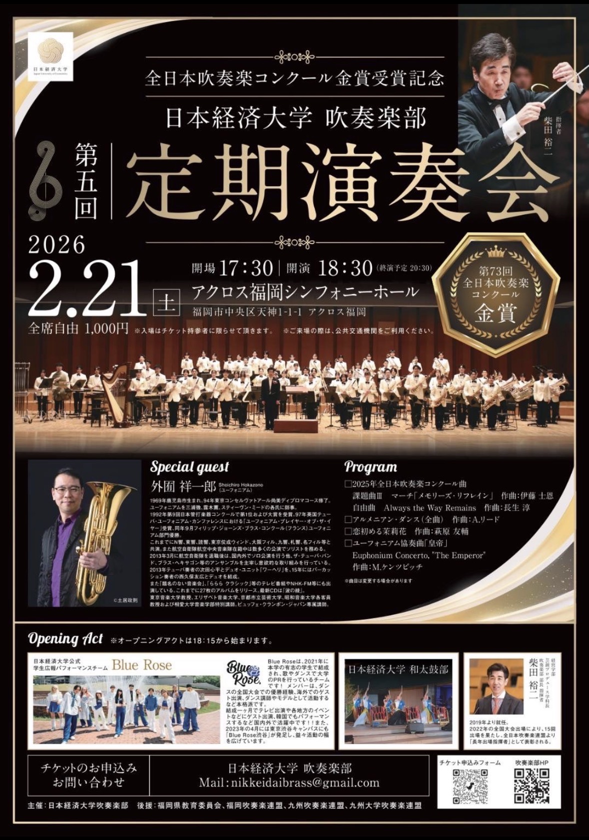今回はスペシャルゲストとしてユーフォニアム奏者、外囿祥一郎さんが出演されます♪♪